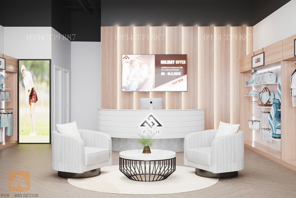 Mỗi chi tiết – từ kệ trưng bày, quầy thu ngân, đến khu thử đồ – đều được tính toán tỉ mỉ nhằm tối ưu công năng và nâng tầm trải nghiệm mua sắm.