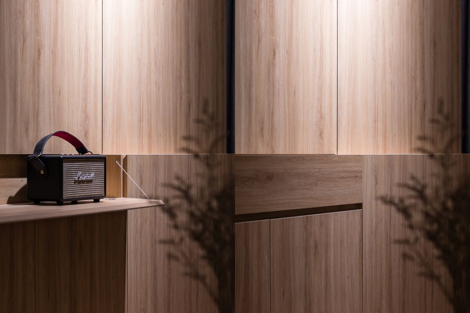 Hệ tủ vách ở phòng khách giúp chủ nhà giấu kín đồ đạc.