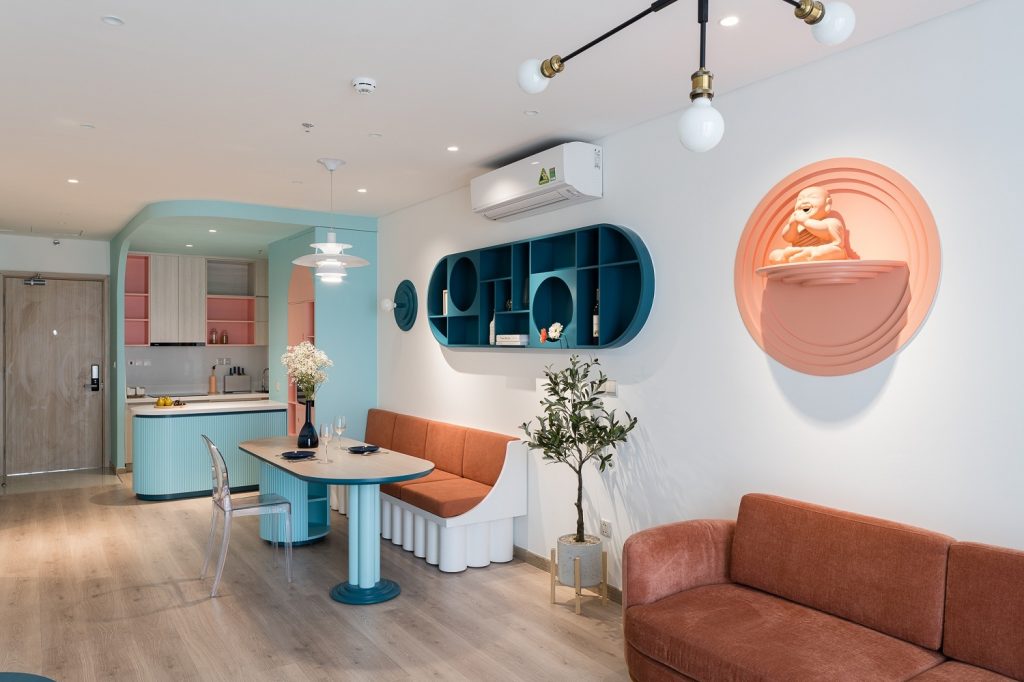 Từ yêu cầu cũng như độ tuổi của các thành viên gia đình. Sau năm tuần, kiến trúc sư đưa ra thiết kế với màu chủ đạo là trắng, hồng và xanh bạc hà, được cả em bé lẫn vợ chồng gia chủ yêu thích.